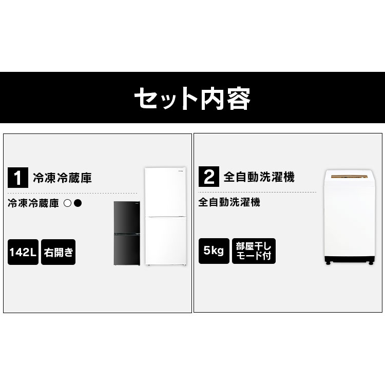 家電セット 2点 新生活 一人暮らし 新品 冷蔵庫 142L 洗濯機 5kg アイリスオーヤマ家電 セット 新生活 新生活応援セット 新生活家電 一人暮らし 白 ホワイト 黒 ブラック